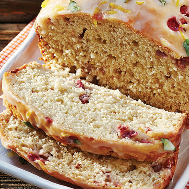 Meanwhile, to make glaze, use a whisk to blend icing sugar, lemon juice and the 1 tsp (5 mL) lemon zest. Stir in basil. Drizzle loaf with glaze. Allow glaze to set before slicing.
