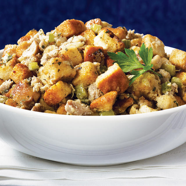 - each pulled and roughly chopped fresh savory, sage and thyme leaves, stems reserved for the turkey